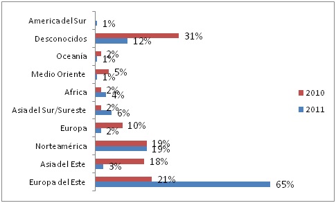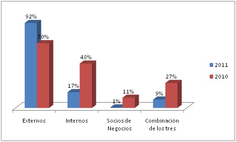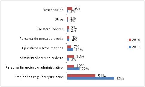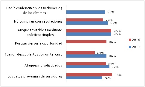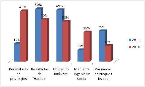 Las siguientes gráficas están elaboradas con base en la información publicada por el Verizon RISK Team en 2010 y en 2011 en sus respectivos “Data Breach Investigation Report” (DBIR) (4)