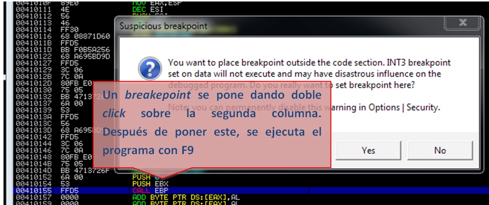 Para comprobar si esto sucede lo más fácil es poner un breakpoint al final del shellcode y ejecutar el programa.