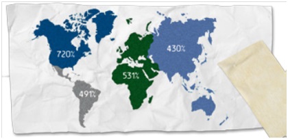 Para dar una idea de la presencia de la región en el ciberespacio, a fines de junio del año 2012, habitaba su territorio 10.6% de los usuarios de Internet del mundo. En cuanto a la penetración respecto al total de la población, a mediados del año pasado era de 42.9%, frente a 34.5% en el año 2011, muy por encima del promedio mundial (34.3%) y del de otras regiones del planeta. Estos valores provistos por “Internet World Stats” siguen mostrando una tendencia positiva a partir del ingreso al nuevo milenio, con un crecimiento de 1310.8% entre los años 2001 y 2012, superando también a otras áreas geográficas como Asia y África. Asimismo, la cantidad de usuarios de telefonía móvil 3G se multiplicó por diez en el mismo periodo, convirtiéndose en una de las regiones con mayor crecimiento del mundo para la telefonía celular, delante de Europa y América del Norte.