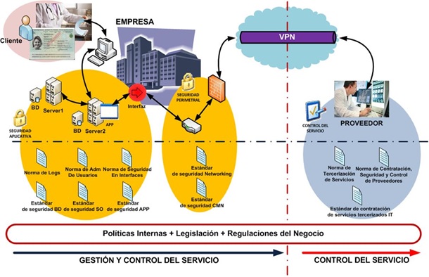 - Los controles de confidencialidad, integridad y disponibilidad serán específicamente definidos en contratos con terceros. Los controles abarcarán todos los riesgos de protección de información lógica, personal y física apropiados, basada en los niveles de riesgo que establezcamos. Además los controles considerarán todos los requisitos regulatorios e imperantes establecidos por la ley.