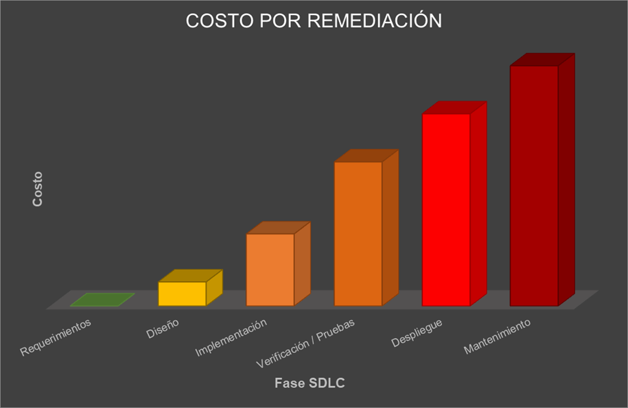 Imagen 1. Costo de remediación de fallas de seguridad en el ciclo de vida de desarrollo de software.