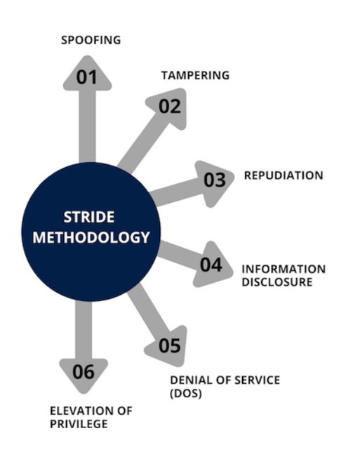STRIDE (Spoofing identity, Tampering with data, Repudiation, Information disclosure, Denial of service, Elevation of privilege) es un sistema de clasificación para los diferentes tipos de amenazas: suplantación de identidad (Spoofing), manipulación de datos (Tampering), repudio (Repudiation), revelación de información (Information Disclosure), denegación de servicio (Denial of Service) y escalación de privilegios (Elevation of Privilege).