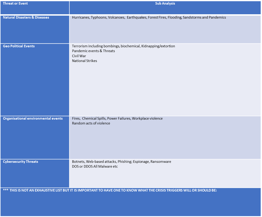 - Muchas organizaciones NO tienen una función o proceso de CM. En las organizaciones actuales se está volviendo más crítico dado el aumento de desastres naturales y pandemias, que en la lista de los 10 principales riesgos para 2023 del WEF, junto con el panorama de amenazas de ciberseguridad, los principales eventos geopolíticos, incluido el terrorismo, lo convierten en una parte importante de la gestión de una empresa u organización.